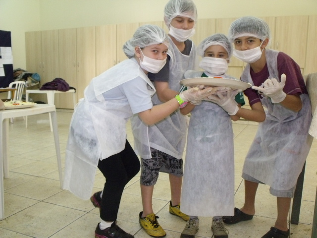 Os pizzaiolos da alegria chegaram cedo, e trabalharam a manhã toda. Foram vários quilos de cebola e carrinhos de tomate…