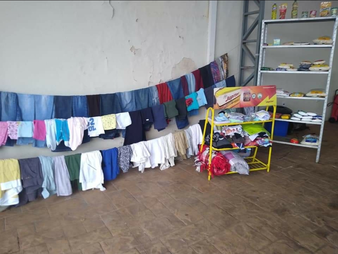 Também entramos em contato com a Irmã Agnes, do Santuário Morada da Alegria Vitoriosa, e nos deparamos com uma grande Providencia Divina, pois um dia após meu contato com a Irmã, o Santuário recebeu uma doação, dessa nos foram destinadas 10 sacolas grandes cheias de roupas e cobertores e 01 caixa de alimentos.